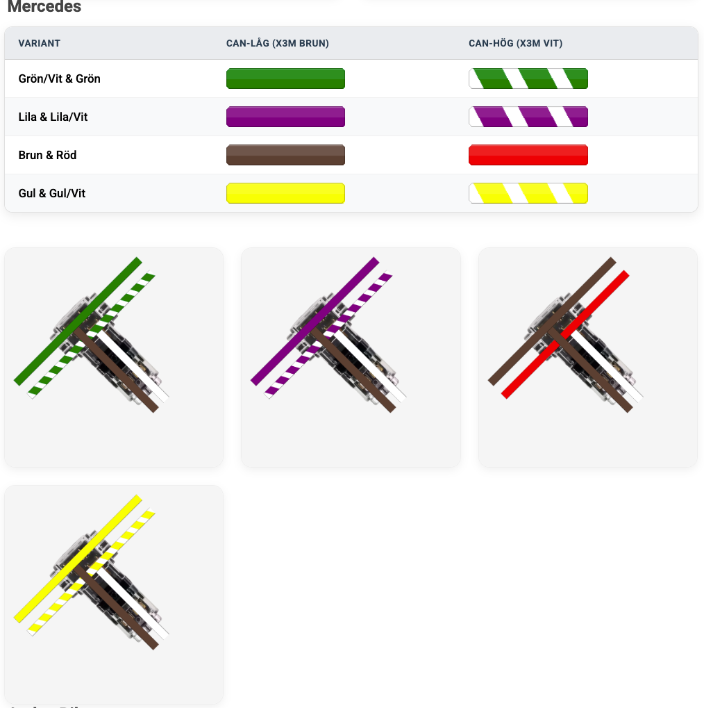 Mercedes har många CAN bussar och även fast färgen stämmer på de tvinnade kabelparet är det inte säkert det är rätt CAN-buss så man måste tyvärr pröva sig fram i de enorma kabelstammar Mercedes har dragit i sina bilar.