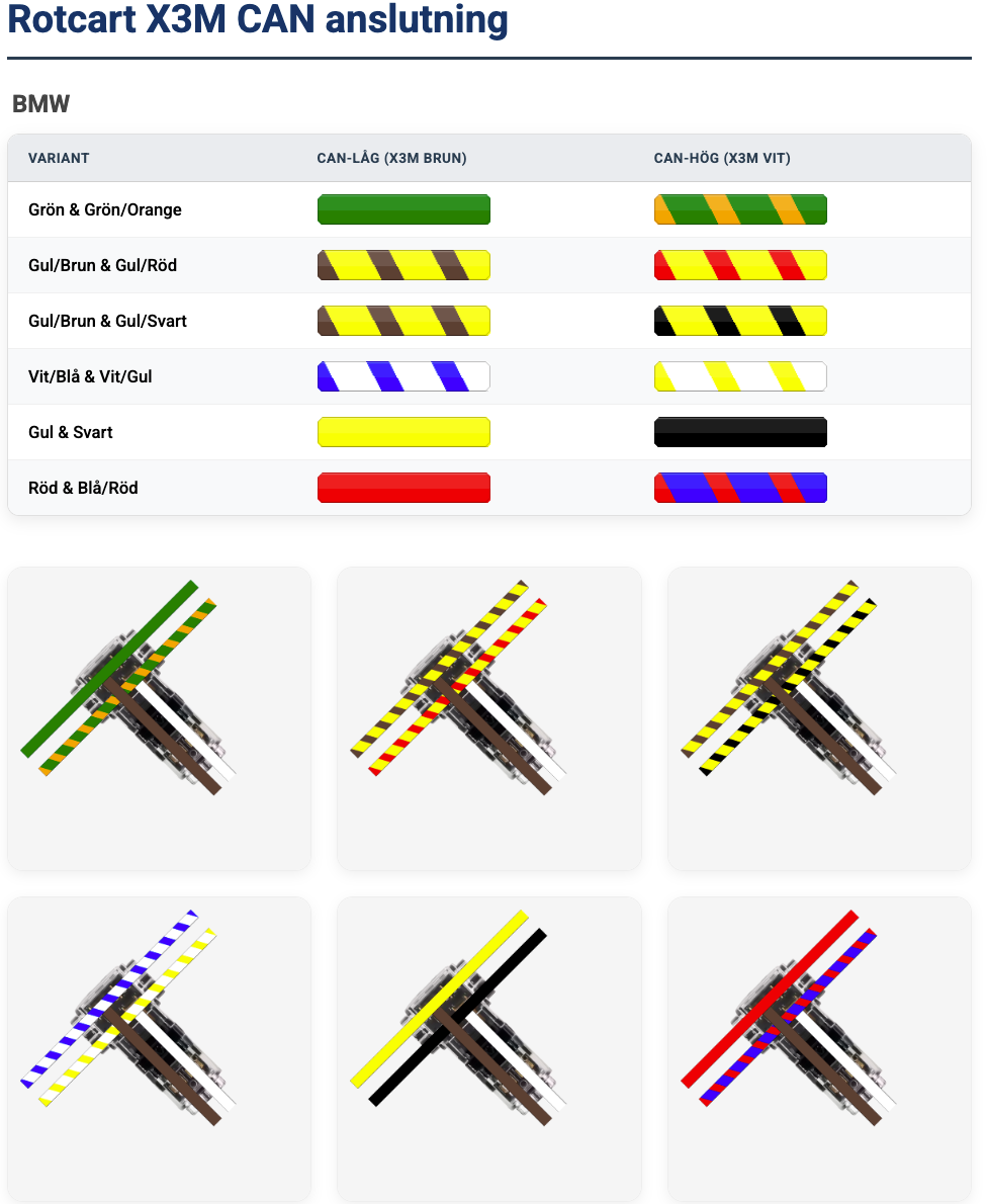 Svart och Gul (Gul är CAN-låg ansluts till brun kabel från X3M)